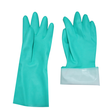 13 polegadas 15 MIL resistentes a produtos químicos luvas industriais luvas nitrílica verde rebanho linha